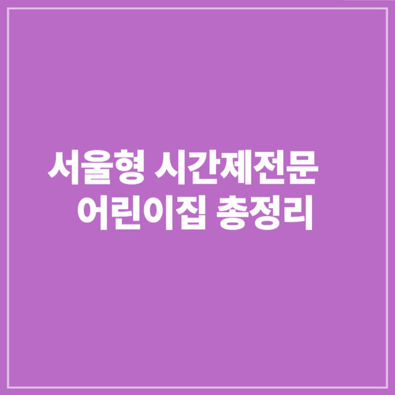 ✔️ ‘서울형 시간제전문 어린이집’이 뭐냐면요?