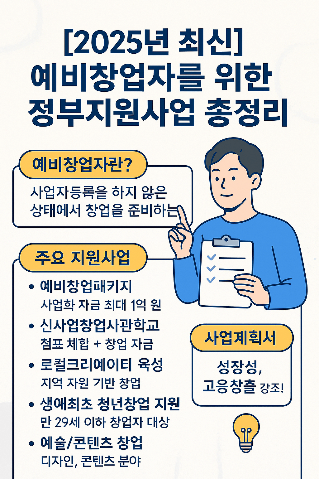 2025년 현재, 정부는 예비창업자를 위한 자금지원, 교육, 멘토링 등 다양한 프로그램을 운영 중이며,